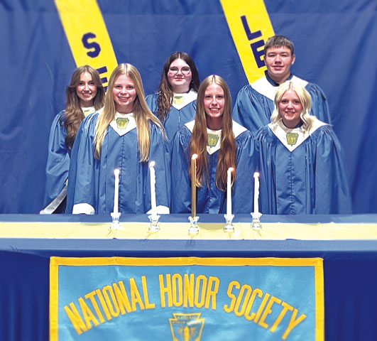 The Badger chapter of the National Honor Society (NHS) celebrated excellence in scholarship, leadership, service, and character during its annual induction ceremony held Thursday, November 6. The event honored three outstanding students—Kaitlyn Gust, Avearah Hanson, and Ashlyn Johnson—as they were formally welcomed into the distinguished organization. The evening featured the traditional NHS candle-lighting ceremony, symbolizing the core values of the society, and a musical performance by senior member Emily Burkel, adding a heartfelt touch to the program. Sophomore honor students Shaina Gust, Deegan Hanson, Mackenzie VonEnde, Ava Warne,and Quynn Washington served during the ceremony, helping make the evening both meaningful and memorable. The new inductees will join senior members Emily Burkel, Hailey Lundgren, and Tryg Olson in continuing the chapter’s proud legacy of service. Together, they represent the best of Badger High School—students who lead by example both in and out of the classroom. Throughout the year, the Badger NHS chapter plays a vital role in the community, sponsoring local blood drives, organizing events for Read Across America Week, and volunteering their time in various service projects. Their commitment to giving back reflects the true spirit of the National Honor Society and the pride of the Badger community.